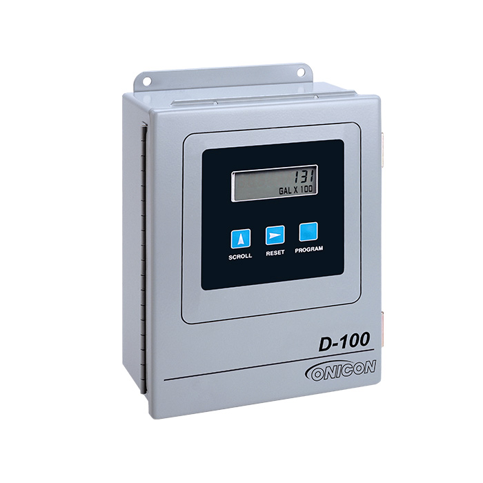 El D-100 es un módulo de visualización totalizador que proporciona una indicación local del caudal de líquido, vapor o gas y datos totales. El diseño flexible se puede configurar con una interfaz de red opcional para comunicar datos a una red de control de edificios. El versátil D-100 también puede funcionar como una interfaz de red para dos entradas analógicas adicionales y una entrada de pulso totalizador adicional. Algunas versiones del D-100 también se pueden configurar con hasta cuatro salidas analógicas opcionales.